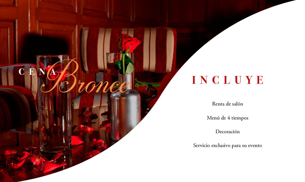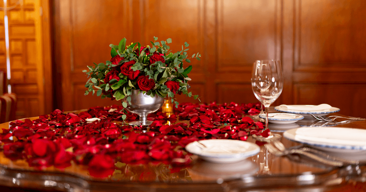 Todos nuestros paquetes de cenas románticas incluyen menú en salón privado y decoración.